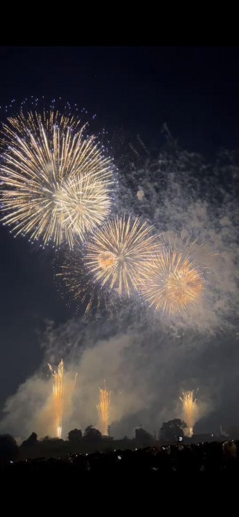 花火競技会とのことで、今まで観た中でも特大の花火が打ち上げられたり、連続で何発も花火が上がったりで素晴らしかったです。