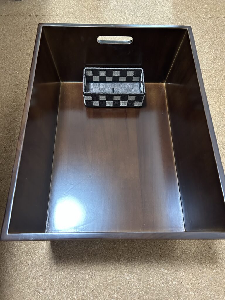 以前のものより大きく、またキャスター付きなので出し入れがしやすくなりました。