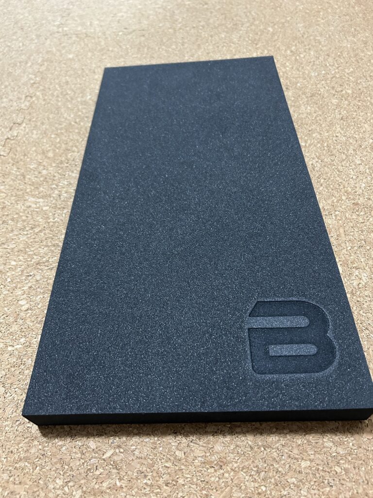 写真にあるこの黒いパッドの上に暫く立っていただき足のセンサーを呼び起こしバランス感覚を整え、疲れにくい歩き方をマスターしていただけると嬉しいです。
